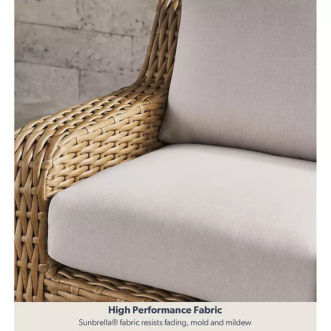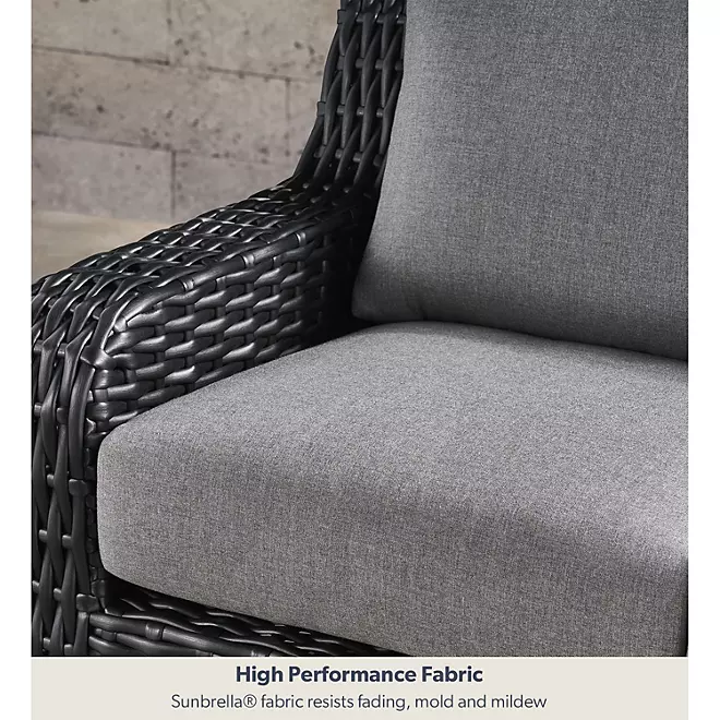 Introducing the Member's Mark Athena 7-Piece Sectional with Firepit, a timeless piece that combines clean lines and sophisticated curves to create a luxurious oasis for your outdoor space. Artfully crafted with heavy-duty, corrosion-resistant, powder-coated steel frames, this sectional is wrapped in hand-woven all-weather resin wicker in a neutral hue to complement any décor.