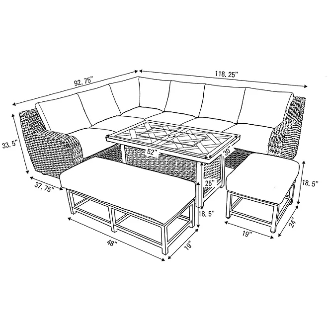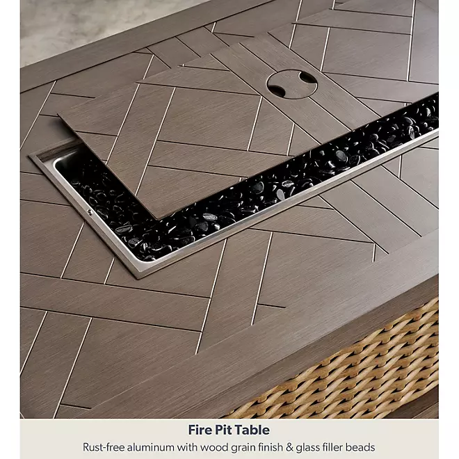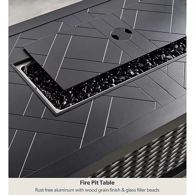 Additional Inclusions: The package also includes a 1-piece custom furniture cover made from recycled content, clips to attach the sectional seats, black fire glass beads, a matching burner lid, and the natural gas orifice.