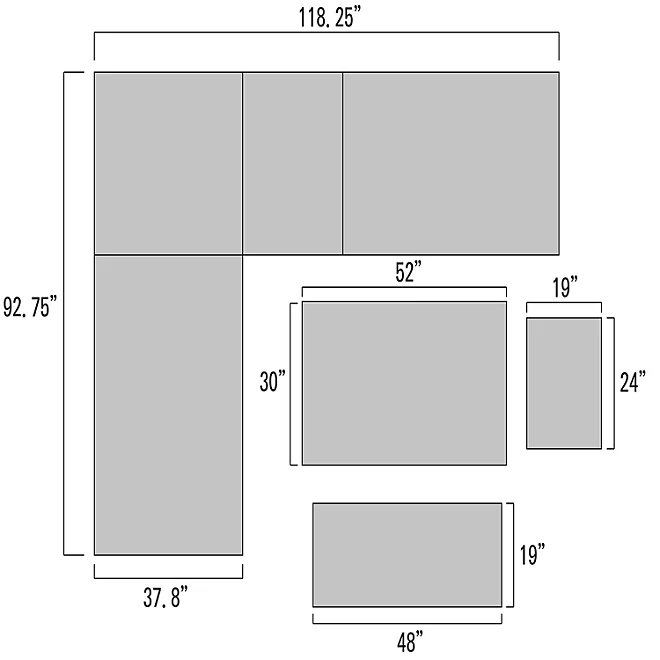 Sectional: 118'W x 92.75'D x 33.50'H