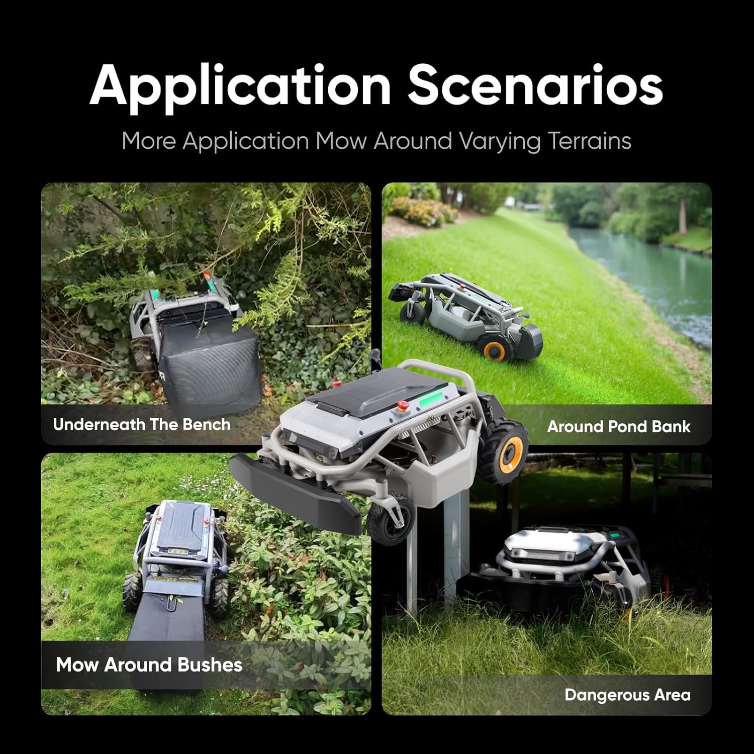 • 【Smart Terrain Recognition with Dynamic Adjustment】 — Designed with dual-wheel drive and dual-motor integration, this Mowrator RC mower reliably navigates large-area flat terrain. It smoothly powers through dense, and wet grass without clogging for comprehensive lawn coverage.