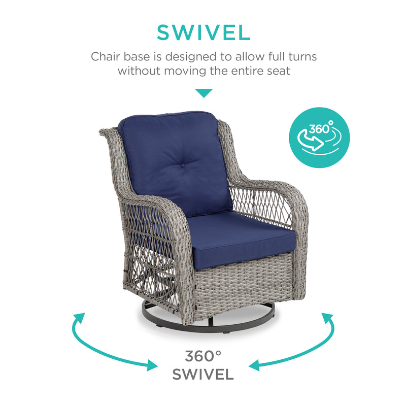 - Includes: (2) Swivel chairs, Table